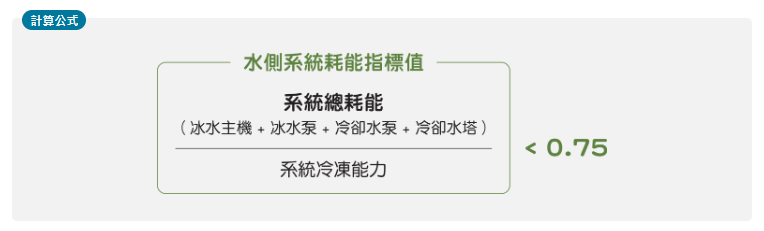 依經濟部能源署公告:「蒸氣壓縮式冰水機組容許耗用能源基準與能源效率分級標示事項方法」,其中 1 級能源效率之冰水主機。