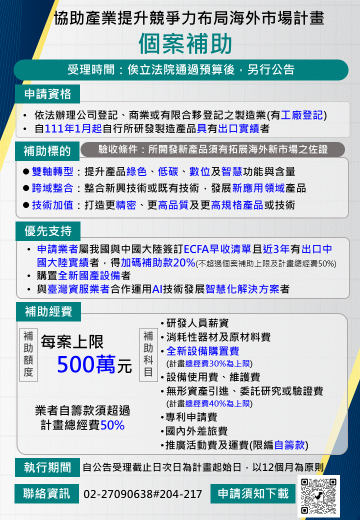 助產業提升競爭力布局海外市場計畫-個案補助-公告(含公告事項)[PDF]